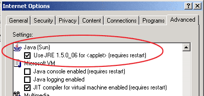 Turning on Java (Internet Explorer)