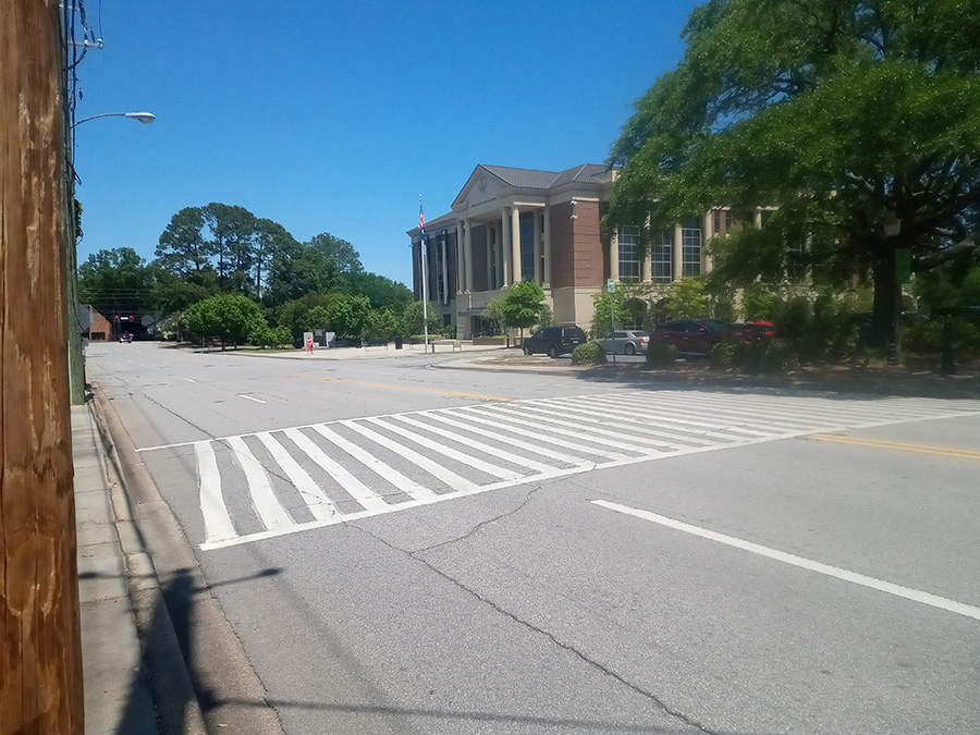 Above: A view of Sumter County Judicial Center from Harvin Street. Funding generated through a 1% sales tax was approved by voters in November 2024 to, among other projects, redesign this street to improve safety and increase on-street parking. Photo by Christi Nakajima, ACEEE.